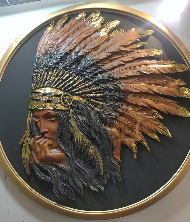 این تابلو بسیار زیبا با قطر ۱۰۵ سانت تولید شده است و جنس طرح سرخ پوست بصورت فایبر بوده و کاملا نشکن است