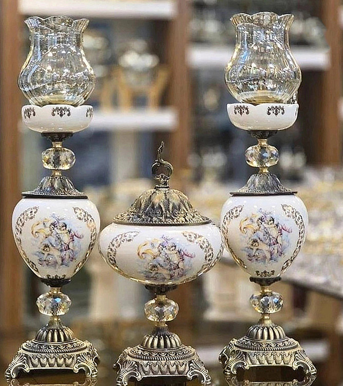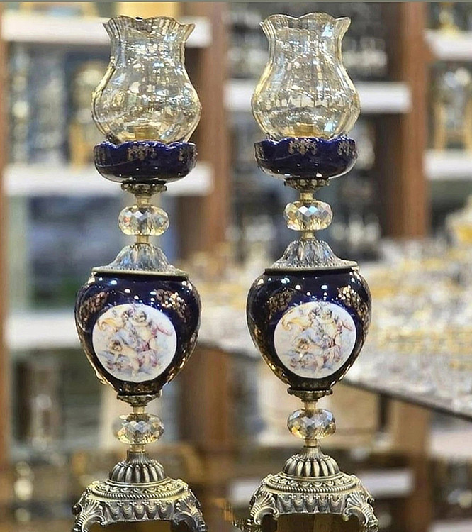 شمعدان جفتی سرامیک طلاکوب فرشته