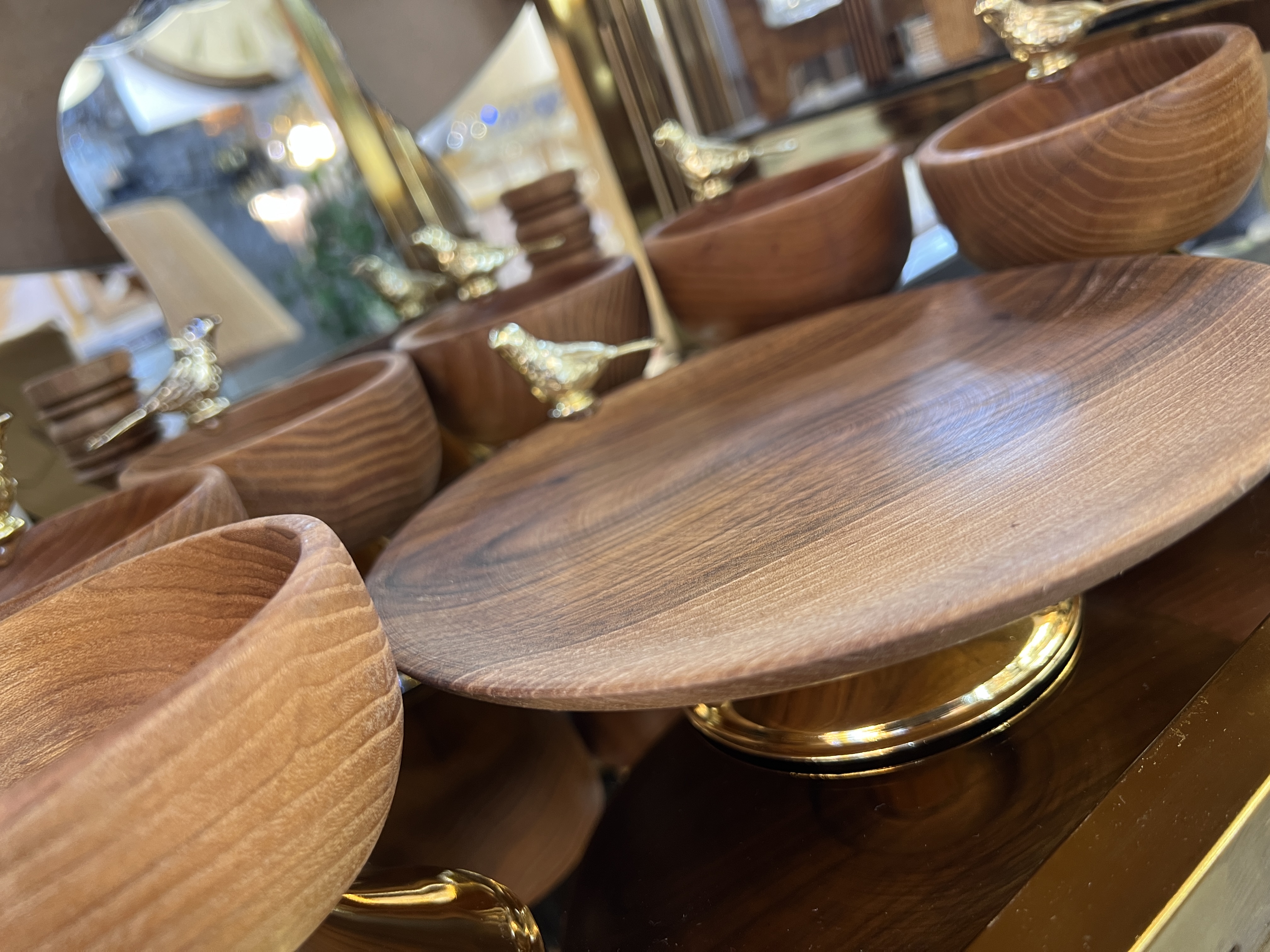 Walnut Wood Haftseen w/ Metal Base Sparrow Model No.hf40502